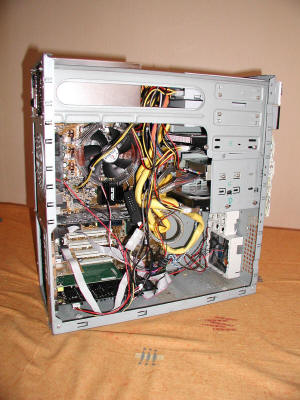 | Voici la nouvelle config de mon ordinateur de studio. Grâce à lui, je peux en même temps travailler sur World ou Frontpage, surfer sur Internet tout en écoutant de la musique avec le lecteur Creative Audigy, en numérisant un film de mon caméscope numérique par le port Firewire, ... Ceci sans aucun plantage ni ralentissements dans les applications. En ce qui concerne l'audio multipistes, "c'est trop facile" pour lui. Le ventilo ne souffle -modérément- que lors de l'encodage des films. Il est constitué d'éléments que j'ai choisi avec soin et assemblés : - Un boîtier Morex qui date mais qui est très solide et surtout de hauteur moyenne, donc peu encombrant. - une carte mère ASUS P4P800 - un Pentium 4 2.8C boosté à 3 GHz - 1 Go de mémoire RAM noname chips Samsung - 2 disques durs Hitachi 120 Go UDMA 100 8 Mo cache 7200 rpm + 1 Hitachi SATA 250 Go 7200 rpm - un graveur de DVD Sony DRU 510A - un lecteur de DVD Creative 12 X (ancien mais fiable) - un lecteur de disquette - une carte vidéo HIS ATI Radeon 9200 SE 128 Mo - un ventilateur Zalman CNPS7000A AlCu - une alimentation Q-Technology 350 w PFC avec 2 ventilateurs PAPST - deux ventilateurs 80 mm de récupération branchés en 5V - des nappes rondes : 2 IDE et 1 lecteur de disquettes - carte son Frontier Wave Center PCI ADAT et S/Pdif - carte son Creative Audigy 2 ZS Platinium Pro qui comporte 2 ports Firewire, 2 E/S midi, 4 S/Pdif, casque, etc... - de l'isolant phonique Nomaphone (www.nmcdiy.com) - des dalles de moquette de bonne qualité. J'ai acheté l'ensemble du matériel informatique chez LDLC |